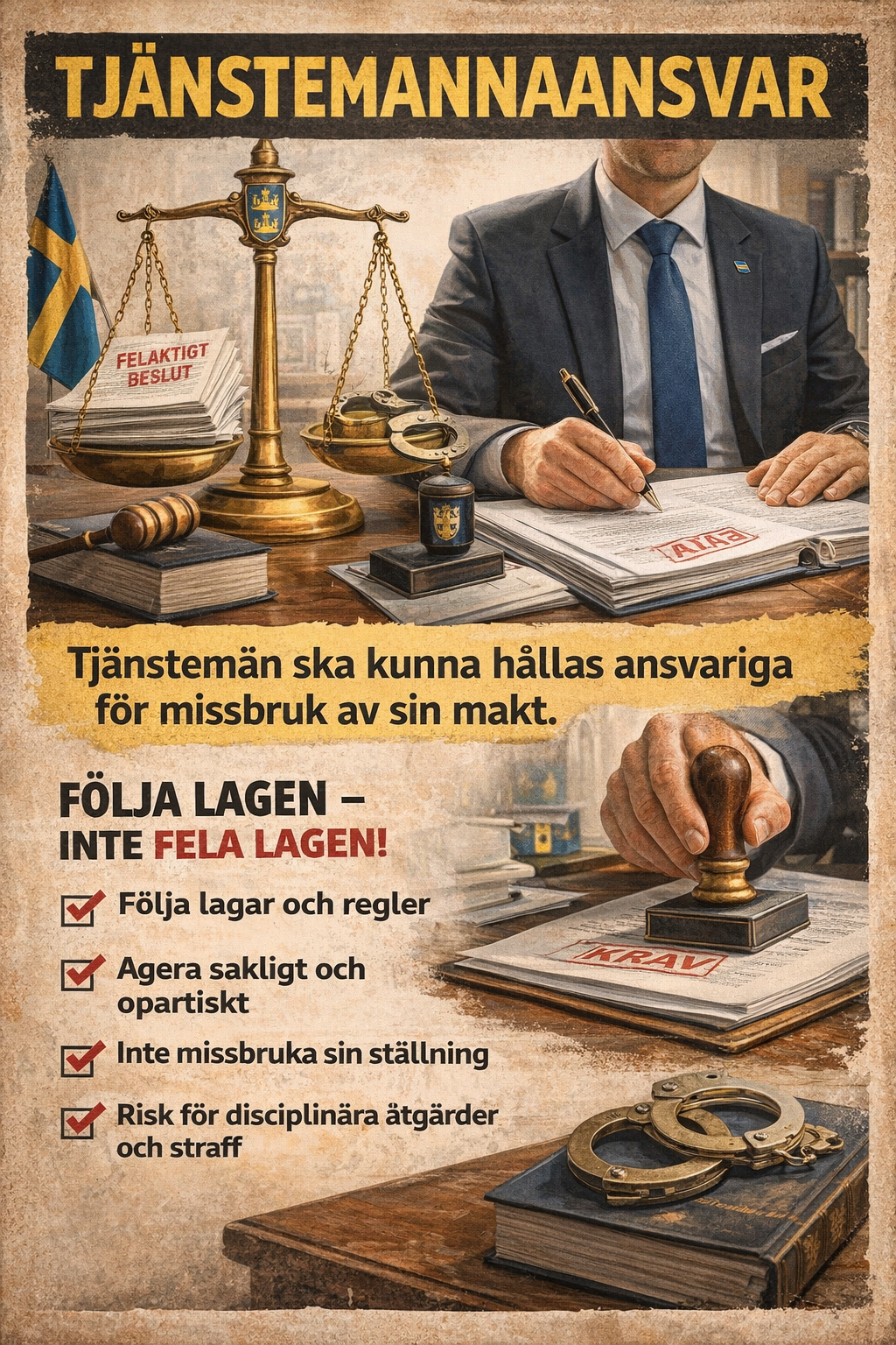Telgenytt: "Tjänstefel är i dag ett brott enligt brottsbalken. Trots detta har jag under tolv år i Södertäljes politik — trots upprepade skandaler och kostsamma misslyckanden — aldrig sett någon ställas till svars i domstol.", skriver Joakim Granberg, RP.