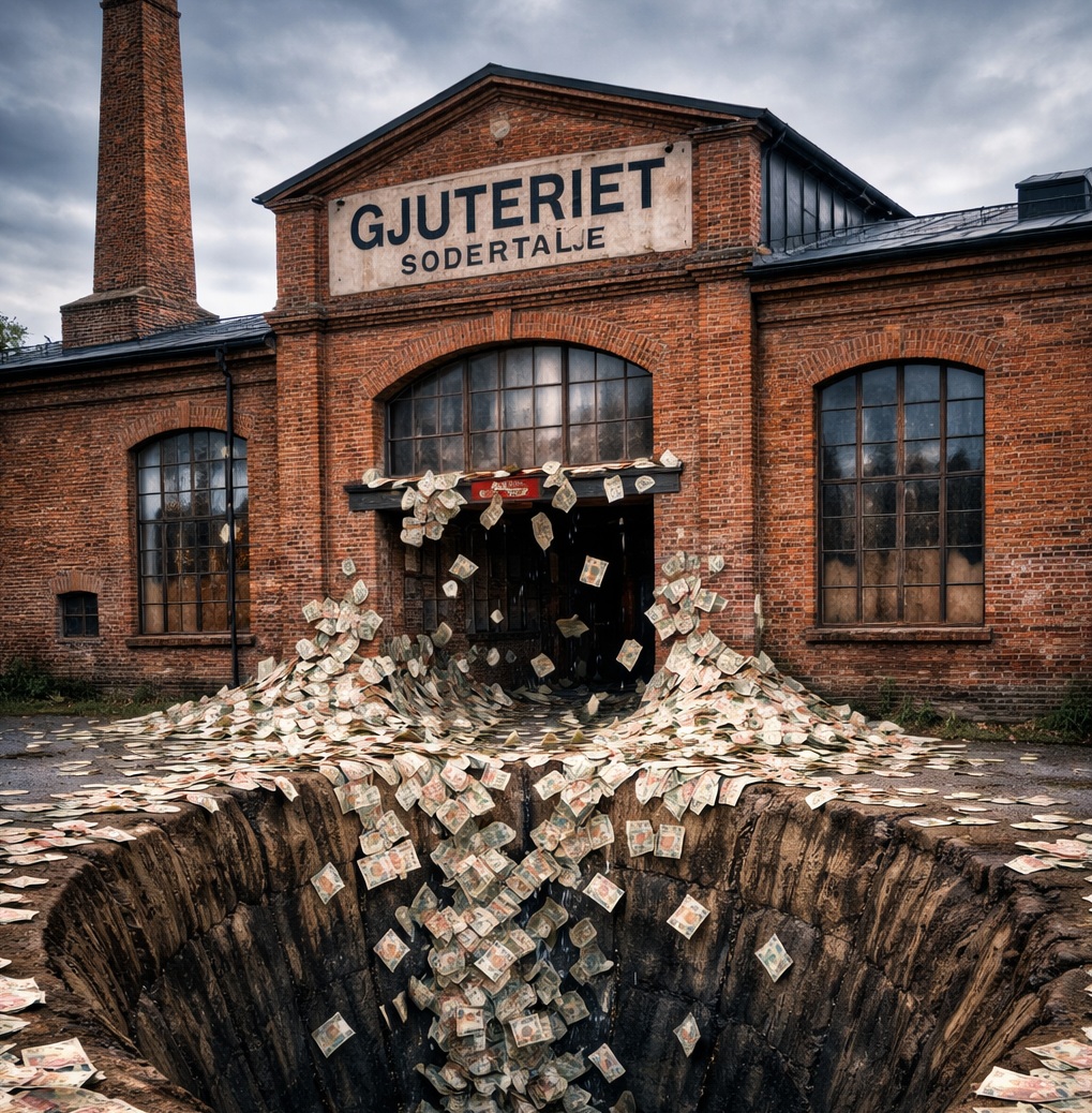 Ett drygt 5 årigt bedrägeri mot skattebetalarna har snart gått i mål, redan 11 november 2017 gick grafikens hus ut med att man skulle flytta till Södertälje och målet var att etablera sig i gjuteriet. Kultur och fritidschefen Staffan Jonsson deklarerade att det var till oss dem skulle komma och Anna Bohman Enmalm dåvarande ordförande för kultur och fritidsnämnden höll jublande med. Att man hade lovat grafikens hus gjuteriet och dess renovering för att de skulle etablera sig i Södertälje har man aldrig erkänt offentligt. Första felbeslutet var att restaurera gjuteriet istället för att bygga en kopia, trots att utredningen kom fram till att stort sett allt var tvunget att bytas ut utom skorstenen som gick att renovera. Nu har vi snart en nybyggd kopia till det dubbla priset genom att man har letat enstaka tegelstenar som går att använda i högar av en förfallen byggnad. När kvarnen på Torekällberget brann upp så hade man då åtminstone vett att bygga en ny kopia istället för att försöka klistra ihop sotet. ”Budget på 30 miljoner. Landar på långt över 100 miljoner” Notering 2026: Gjuteriet står fortfarande tomt och kostar skattebetalarna ca 400 000 kronor per månad i hyreskostnader. Foto: Alexander Ataseven
