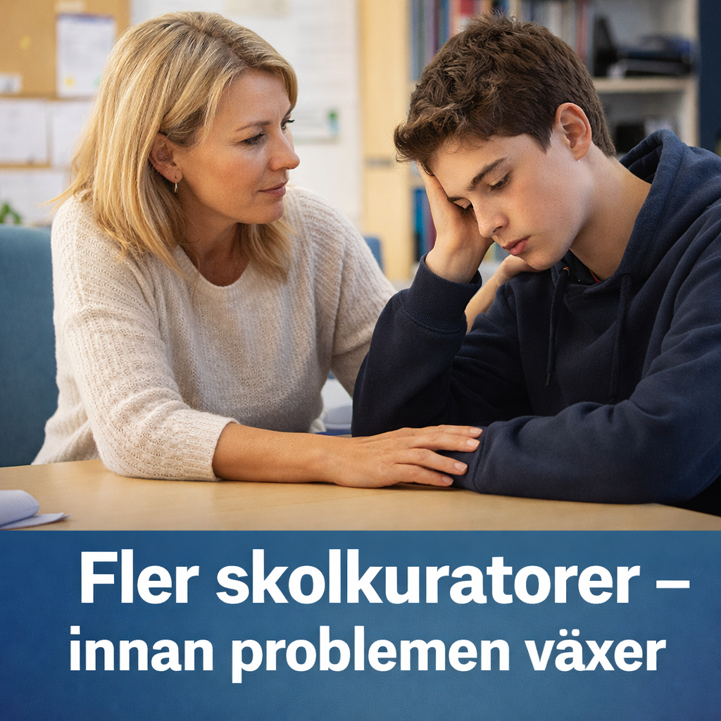 Allt fler rapporter visar att unga i Sverige mår psykiskt sämre. Psykiska besvär, vårdkonsumtion och användning av antidepressiva läkemedel har ökat kraftigt under det senaste decenniet. Många unga upplever även fler psykosomatiska symptom, vilket visar att deras livsvillkor har förändrats och att stödet behöver stärkas. Det positiva är att unga i dag är bättre på att uttrycka sina känslor och söka hjälp. Ofta räcker det att få prata med någon – helst en utomstående vuxen, som en kurator. I dag är skolorna kraftigt underbemannade på detta område. Därför föreslår vi att Södertälje omgående anställer minst tio nya skolkuratorer och därefter säkerställer en nivå om en kurator per 250 elever. - Svaret blev NEJ ifrån majoriteten.