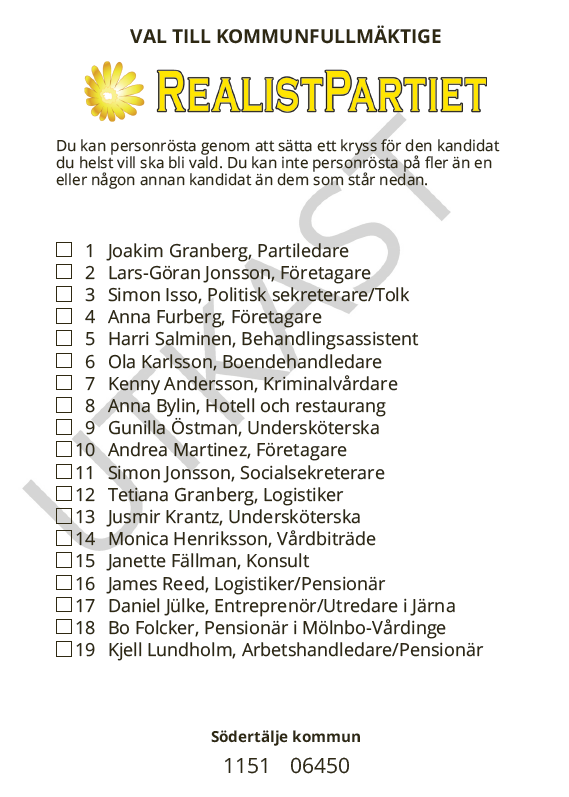 I kommunvalet kan du person kryssa den kandidat du gillar mest, eller rösta på Realistpartiet som helhet. Men känner du att det är dags för något nytt, något lokalt, något som faktiskt vågar utmana det gamla — då vet du vilket alternativ som finns kvar.